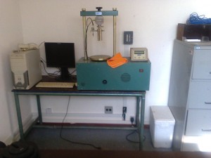 Equipamento utilizado para realização do ensaio de determinação do “Índice de Suporte Califórnia” (ISC), comumente chamado de CBR.